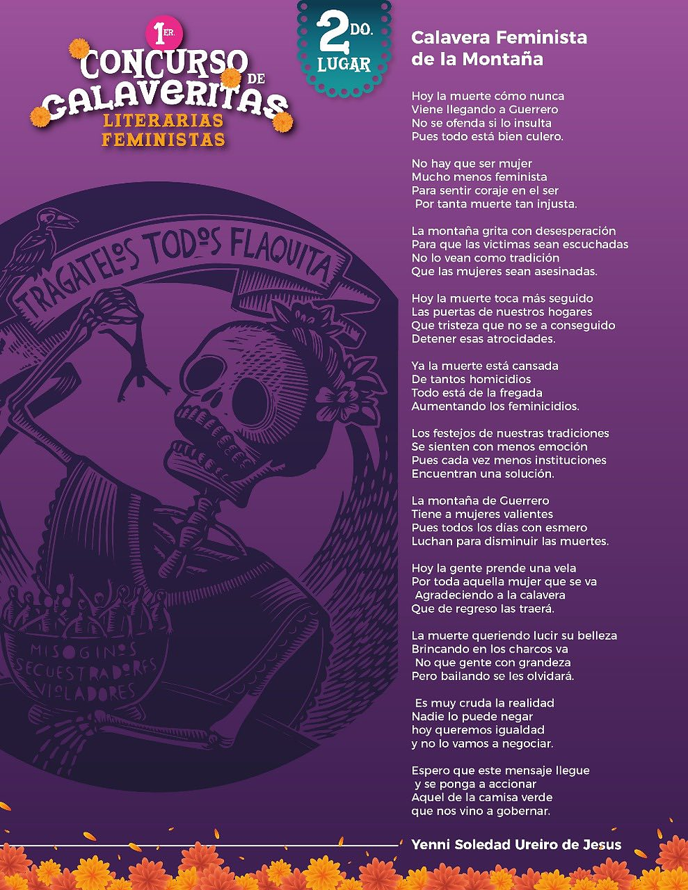 En esta mañana les compartimos las composiciones que resultaron ganadoras del Primer concurso de calaveritas literarias #feministas; gracias todas las personas participantes.